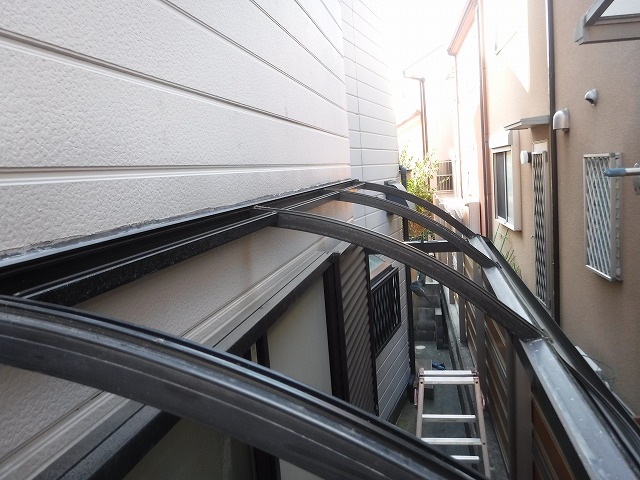 築27年の戸建て住宅にお住まいのお客様より、一階に設置されているテラス屋根についてご相談をいただきました。こちらのテラス屋根は通路部分の雨除けとして設置されていたものでしたが、日常生活の中で使用する機会は少なく、そのままになっていたそうです。